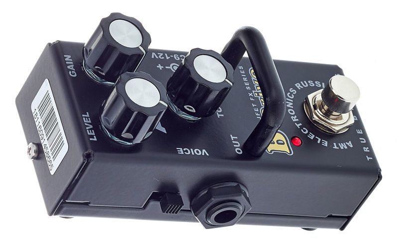 - В серии Drive mini использованы новые оригинальные схемные решения, разработанные специалистами компании AMT, использующие эмуляцию перегруза ламповых каскадов и позволяющие получить при низковольтном (9-12В) питании и малом потреблении тока (менее 4мА) яркий и насыщенный звук в стиле оригинальных ламповых перегрузов.