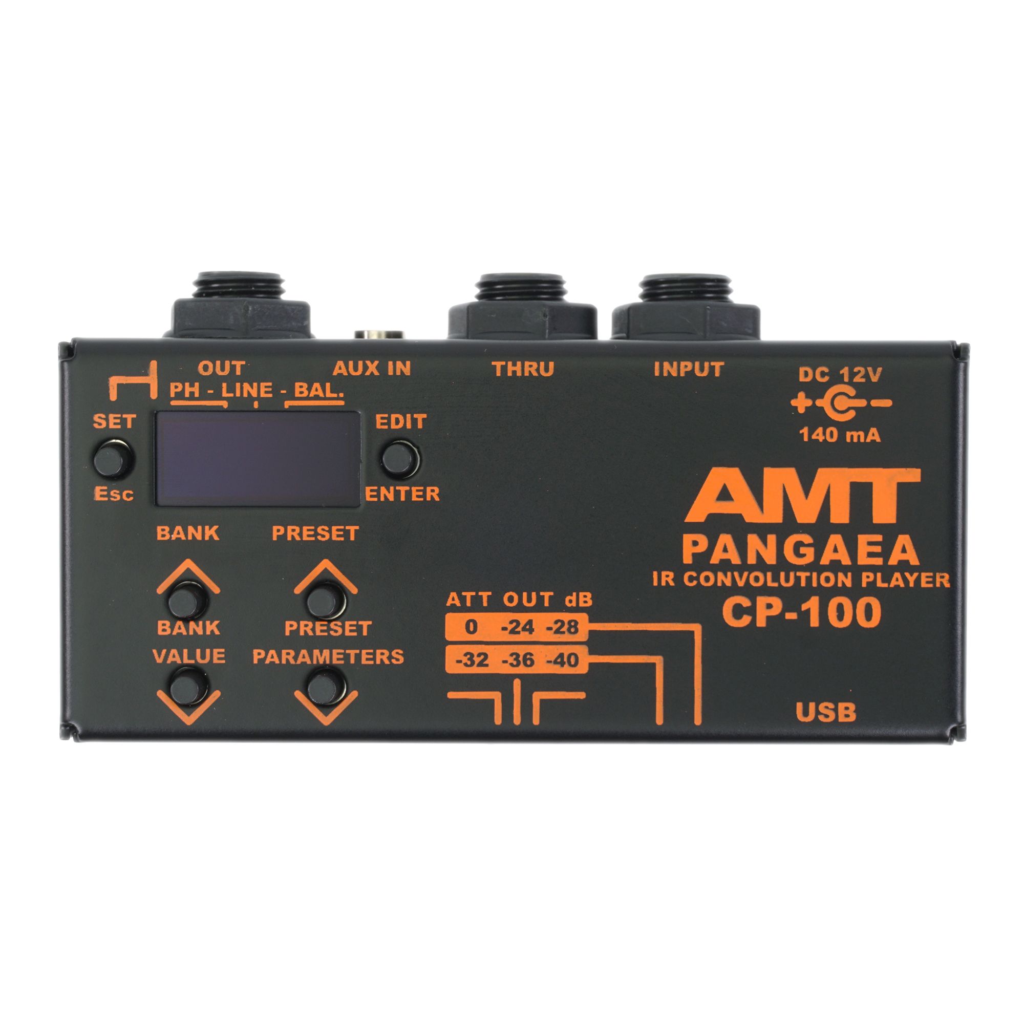 - AMT Pangaea CP-100 позволяет имитировать звучание любого гитарного кабинета, загружая соответствующие импульсные характеристики (IRS) гитарных кабинетов. Огромное количество различных WAV IR импульсов гитарых кабинетов Вы можете легко найти в Интернете (как платных, так и бесплатных).