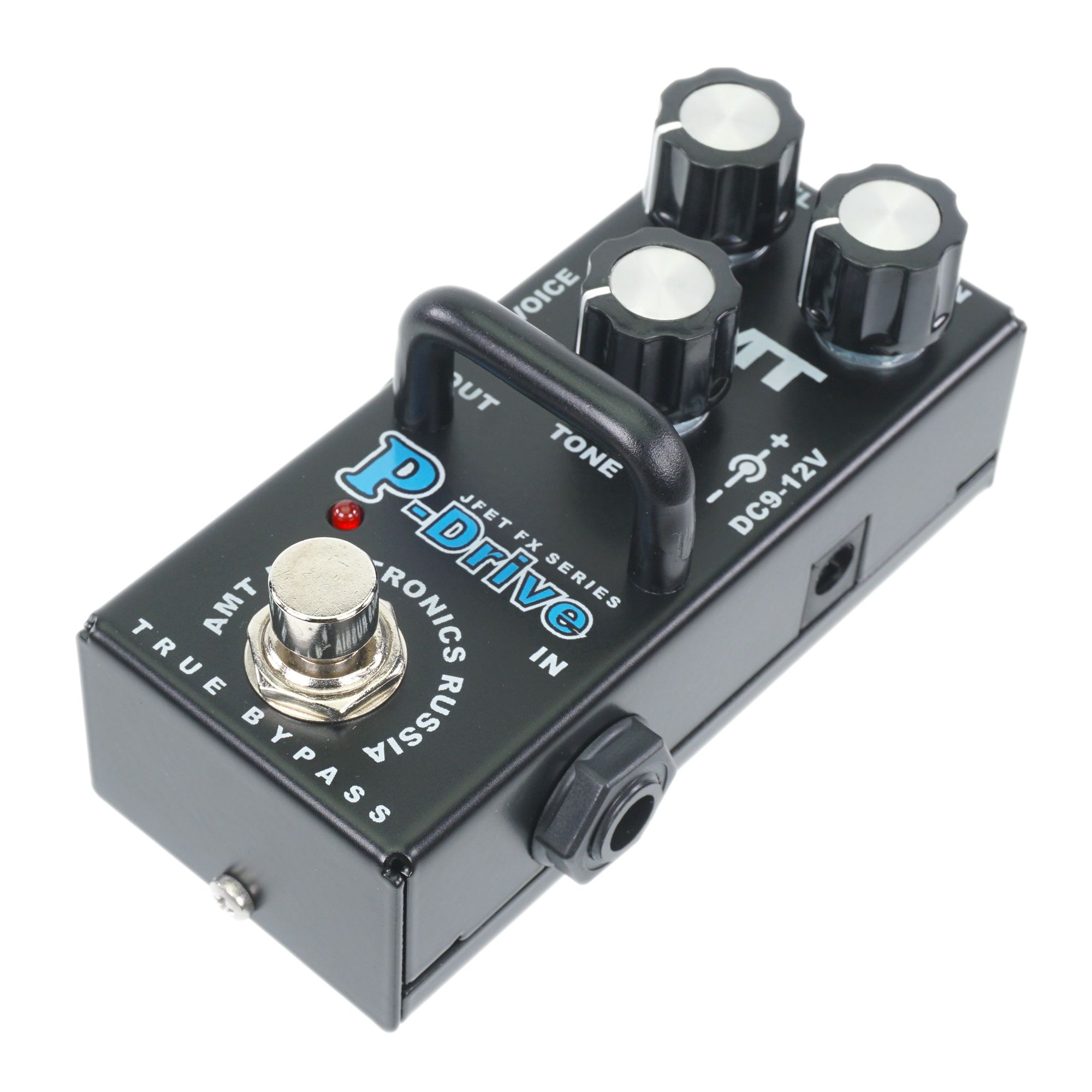 Эффект AMT P-Drive mini формирует, пожалуй, наиболее агрессивный из всей линейки звук, формируемый целыми шестью каскадами, подобно секции преампа усилителей Peavey 5150, 6505. Предельное насыщение гармониками и сочность – так в двух словах можно охарактеризовать звучание этой педали.