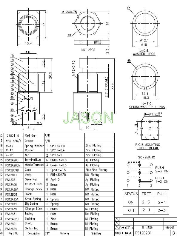 Кнопка футсвитча — полное наименование модели PS12B2B1-E16(G).